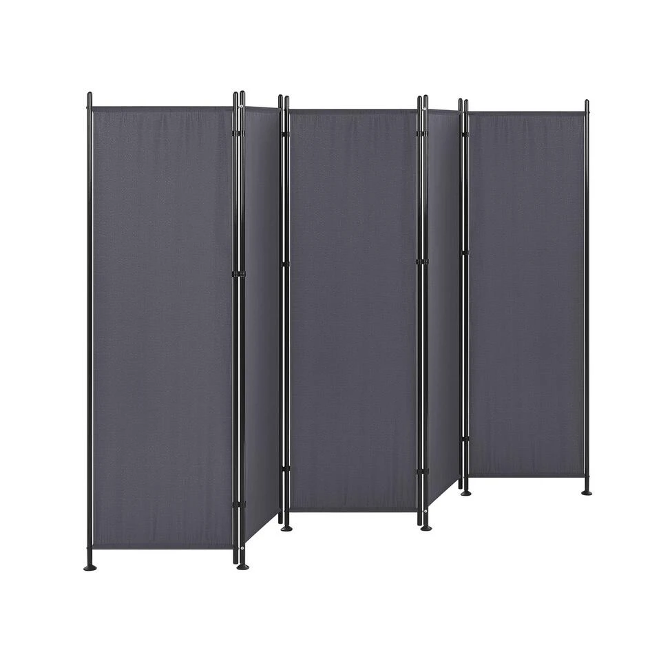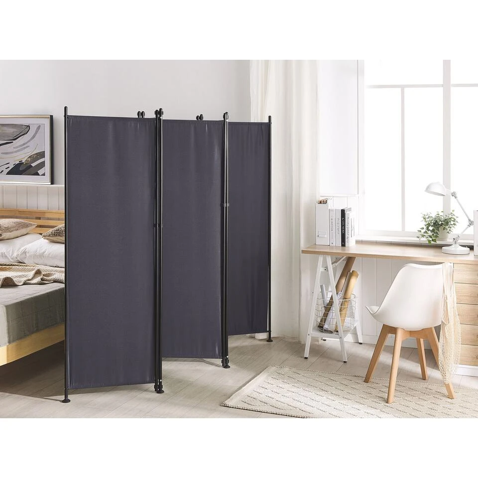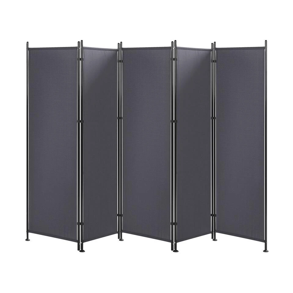 Polyester kamerscherm in grijs. Plaats dit kamerscherm in jouw slaapkamer of andere binnenruimtes om ze meer privé en stijlvol te maken. Dit kamerscherm is gemaakt van gemakkelijk te onderhouden polyester, terwijl het frame is gemaakt van staal, wat de duurzaamheid van het hele stuk garandeert. Door zijn constructie van vijf panelen, kan het dit kamerscherm gemakkelijk worden opgevouwen en verborgen wanneer het niet nodig is. Door de moderne kleur past de room divider in allerlei verschillende interieurstijlen.