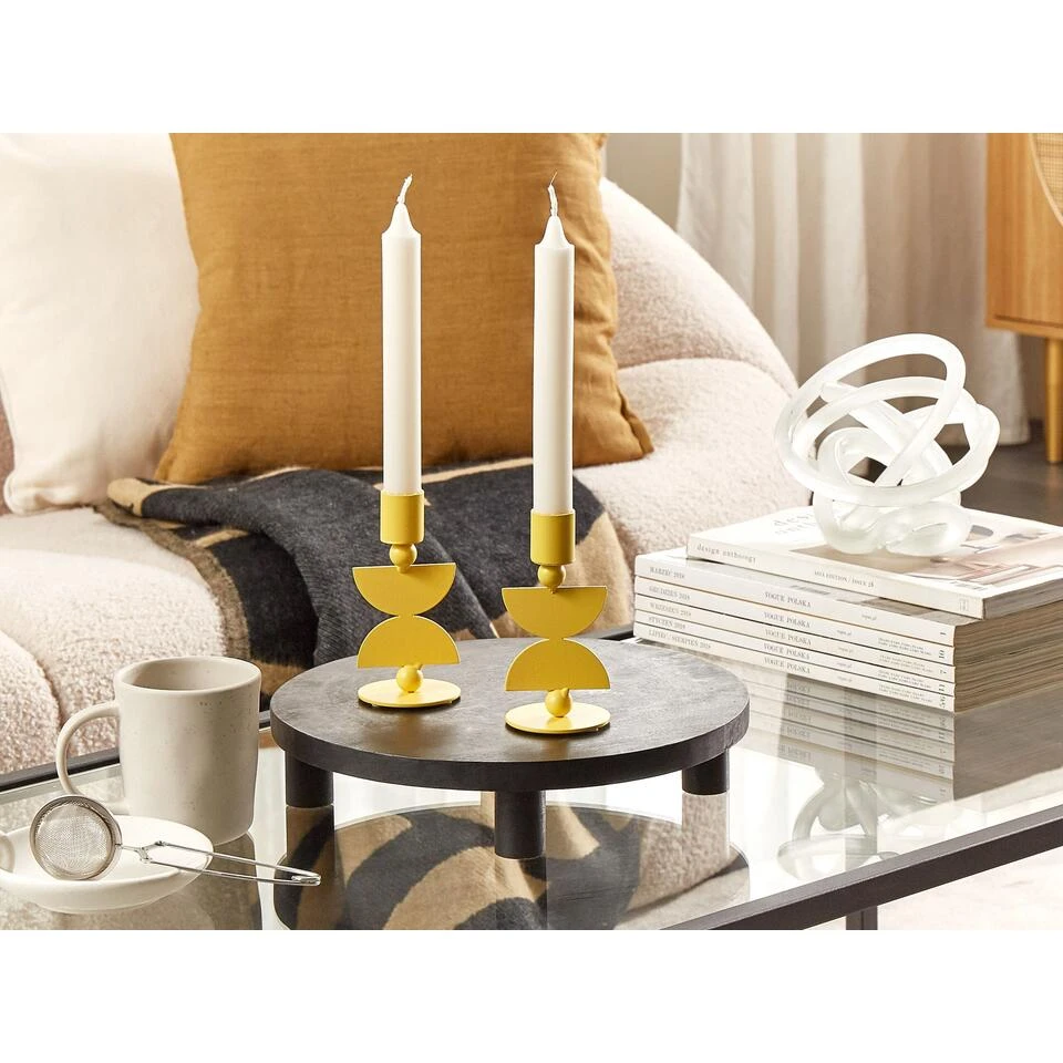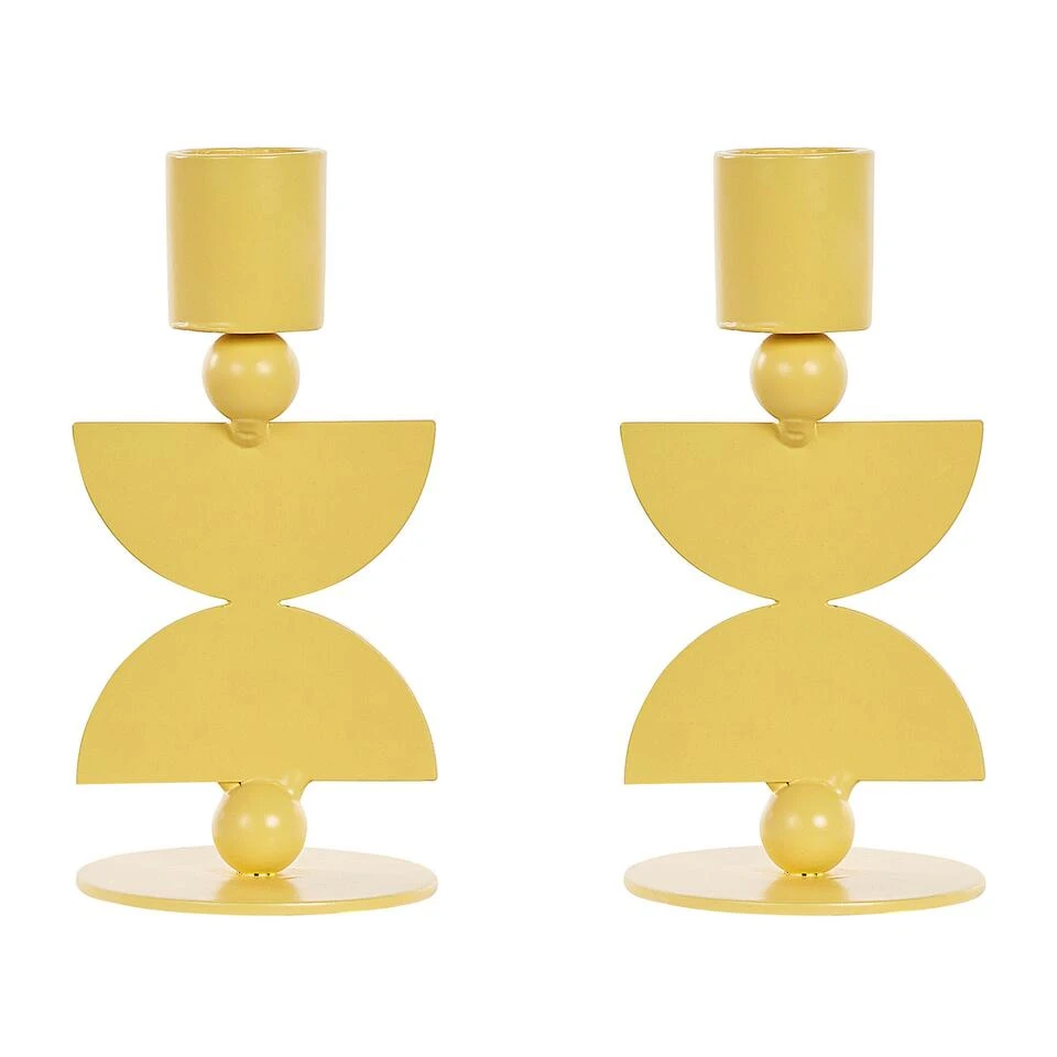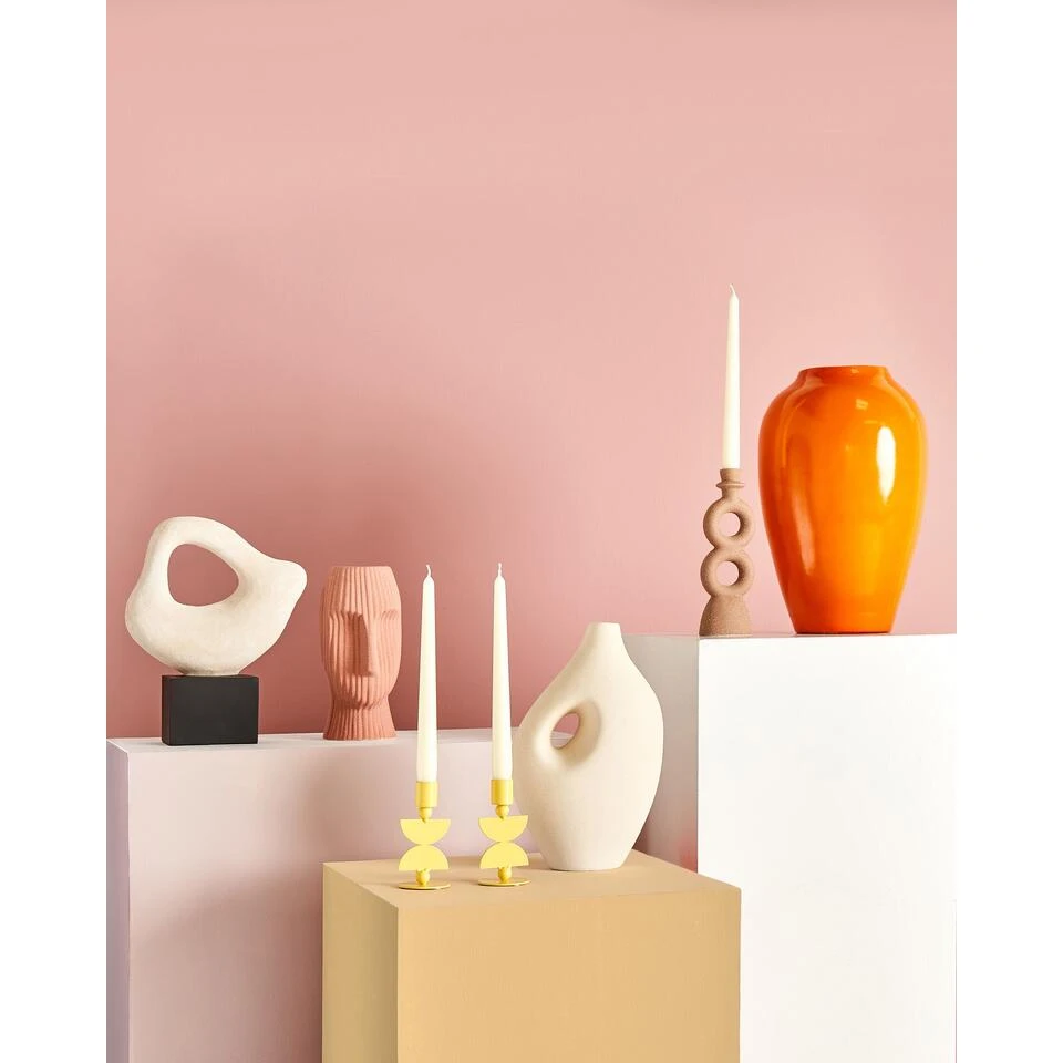 Twee moderne kaarshouders. Deze set van 2 kandelaars is de perfecte decoratie voor verschillende interieurstijlen. De constructie bestaat uit verschillende vormen en geeft een boho gevoel. Gebruik ze met klassieke kaarsen en geniet van een gezellige en fijne sfeer.