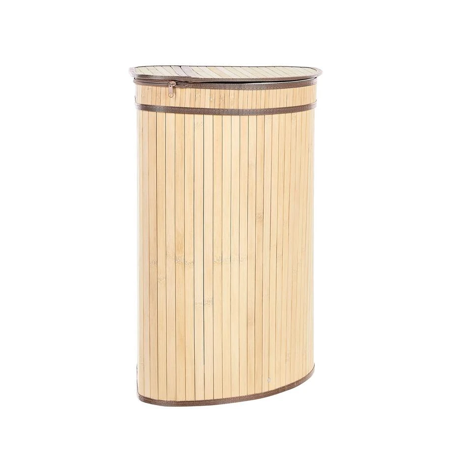 Hoek wasmand. Rust uw badkamer of slaapkamer uit met deze ruime houten mand. Het kan uw wasgoed, linnengoed of het speelgoed van uw kind bevatten. Het deksel met ritssluiting houdt de items uit het zicht. Een meegeleverde stoffen voeringzak kan worden verwijderd voor machinewas. Dankzij zijn vorm kan de mand een lege hoek opvullen en zo extra opbergruimte in een kamer bieden. Het perfecte woonaccessoire voor alle moderne en Scandinavische interieurs, het biedt een eenvoudig, natuurlijk ontwerp dat in elke ruimte past.