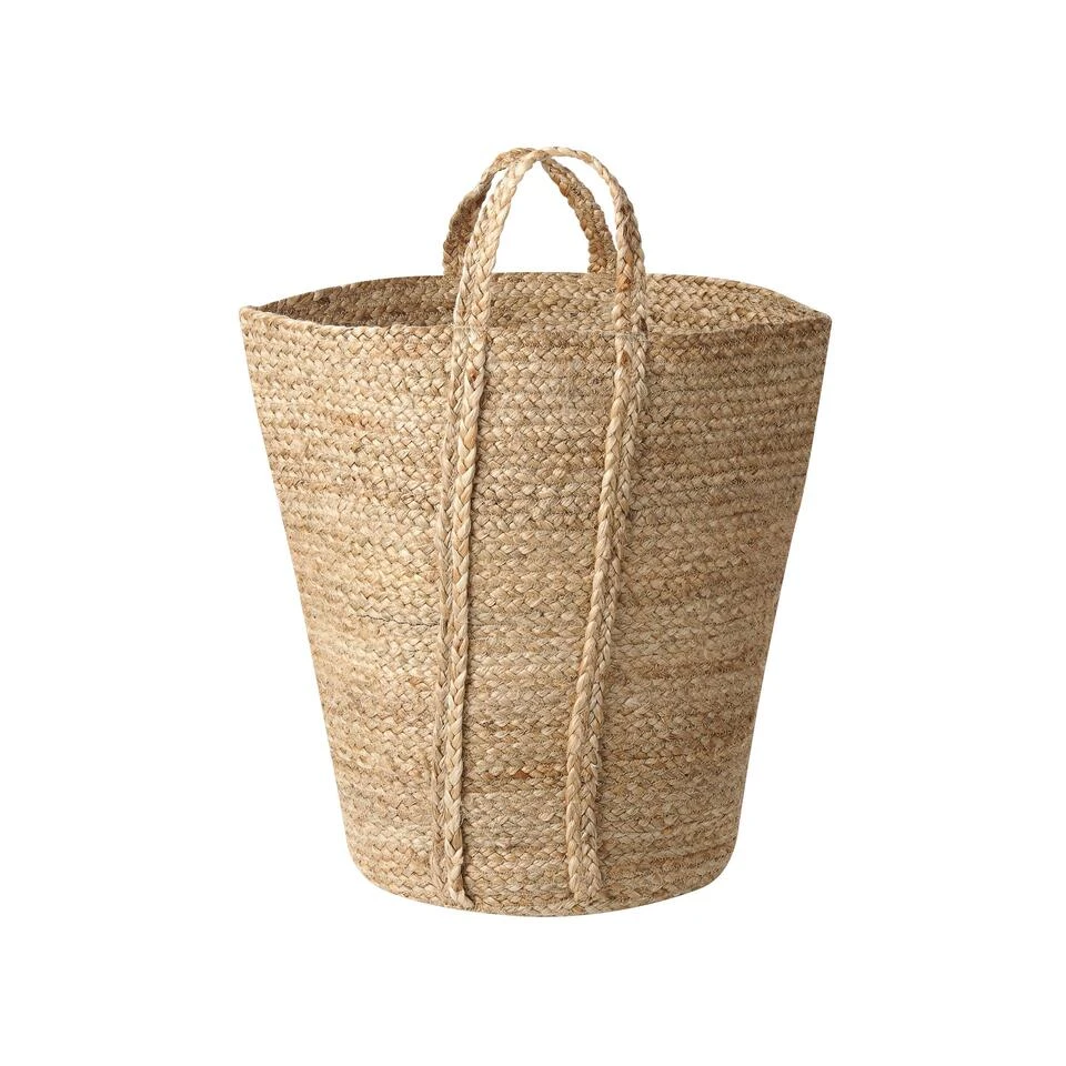Set van 2 gevlochten opbergmanden. Geef je interieur een uniek natuurlijk karakter en houd het netjes met deze mandenset. De producten zijn handgemaakt van echte jute met oog voor detail zodat de accessoires jarenlang een lust voor het oog zijn. De manden zijn multifunctioneel, je kunt er dekens en kussens, en speelgoed in bewaren of ze als wasmand gebruiken.