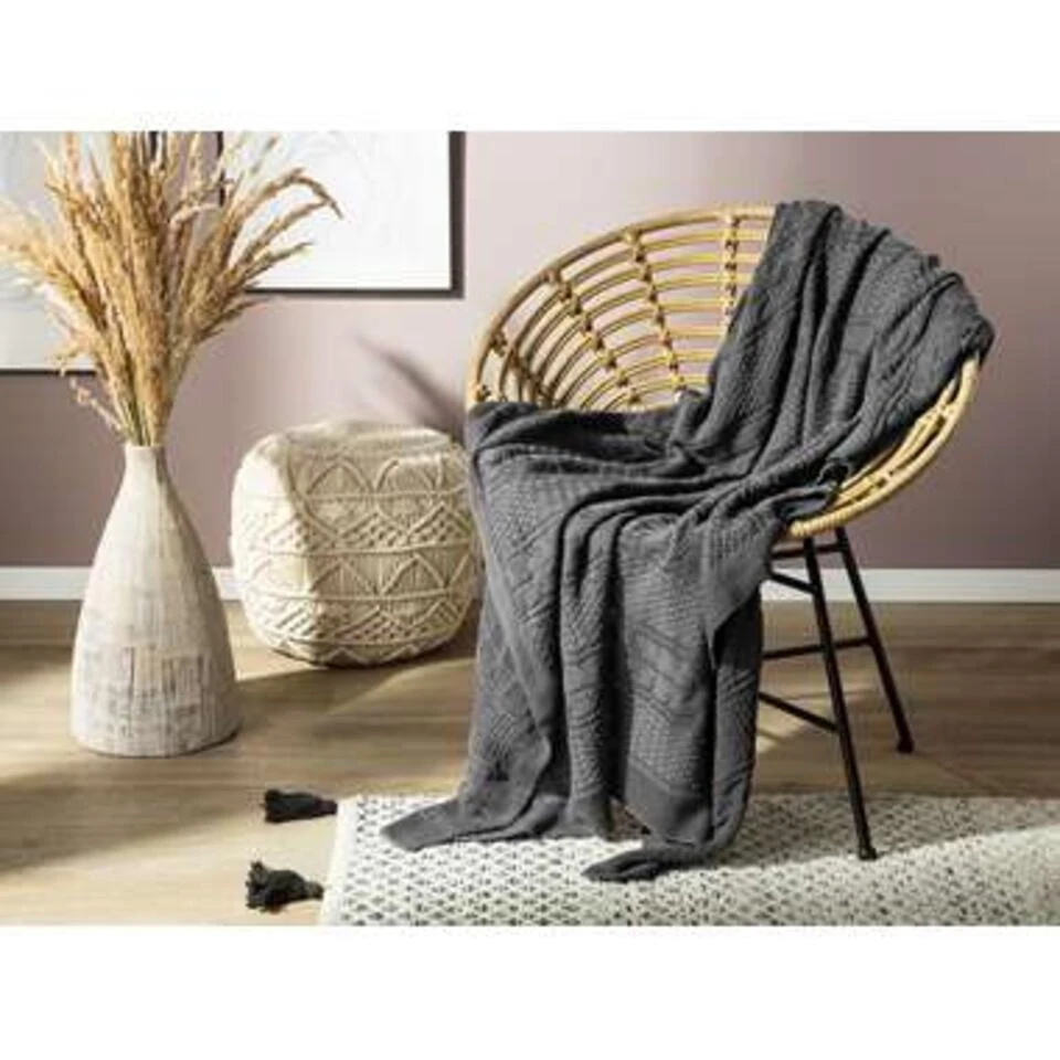 Donkergrijs plaid. Dit zachte plaid is perfect voor in de woonkamer. Het zorgt voor gezellige momenten op de bank of op het terras en past heel goed bij alle decoratiestijlen. Het is decoratief, veelzijdig en altijd een leuk cadeau-idee.