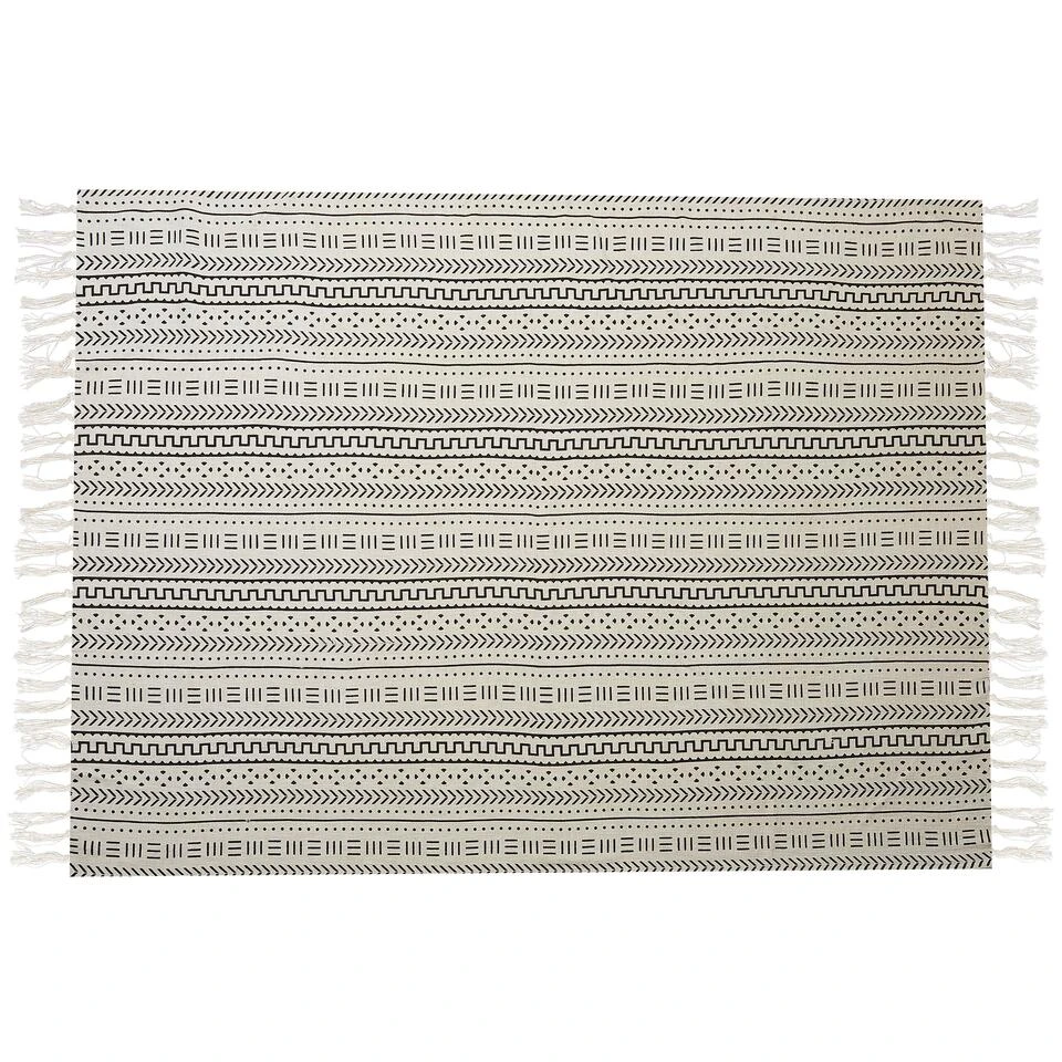 Katoenen Bedsprei Deken in Tribal Patroon. Dit deken haalt inspiratie uit de Afrikaanse cultuur waardoor hij het perfecte statement accessoire is voor je woon- of slaapkamer. Met zijn tribal patroon en decoratieve franjes, krijg je bij dit deken een earthy gevoel . Met zijn universele kleuren past dit deken in alle interieur stijlen thuis. Het deken past vooral goed bij interieurs met veel bruine, gouden of roodoranje accenten. Daarnaast is het deken gemaakt met duurzaam katoen zodat hij jaren mee zal gaan.
