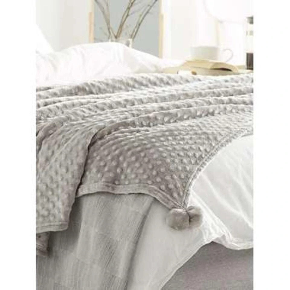 Fluffy plaid in lichtgrijs. Een warme deken gemaakt van het beste materiaal voor gezellige momenten op de bank of op het terras. De schattige pompoms aan de hoeken geeft het plaid een extra touch. Het kleedje is decoratief en is veelzijdig te gebruiken.