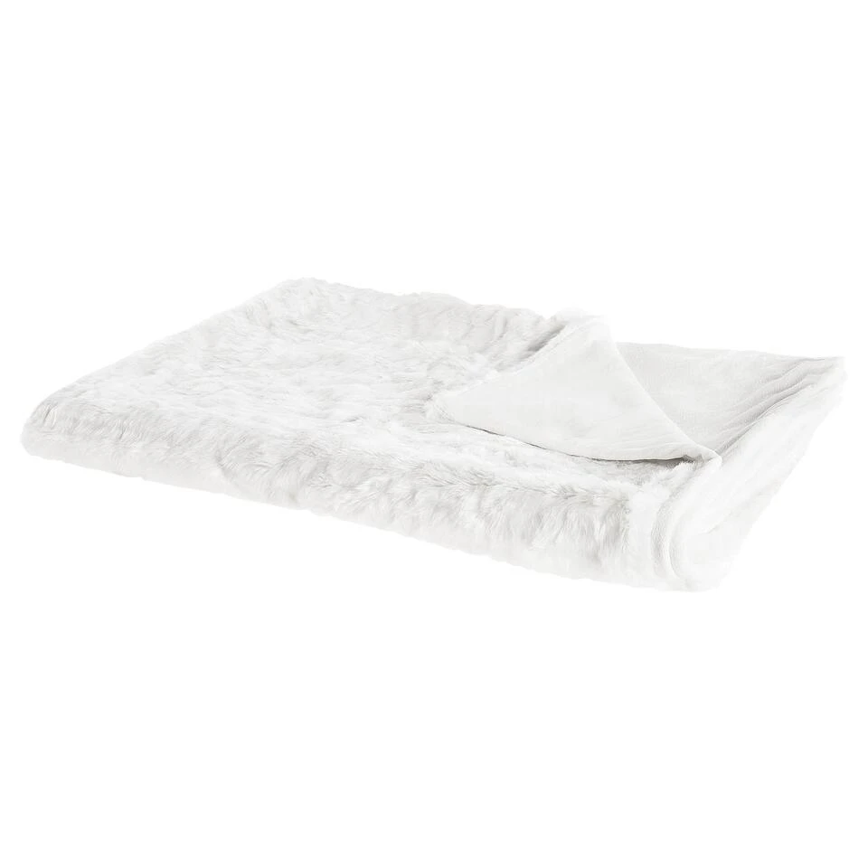 Decoratieve plaid in wit. Verrijk je leefruimte met deze grote deken, die niet alleen zal dienen als een geweldig decoratief stuk, maar je ook zal opwarmen tijdens koude nachten. De plaid is gemaakt van zacht, aangenaam voelend acryl, het is donzig en dik, en vereist geen tijdrovend onderhoud om vele jaren mee te gaan. Door het lichte kleurenpalet past het goed bij de meeste interieurstijlen, van retro tot modern en Scandinavisch.