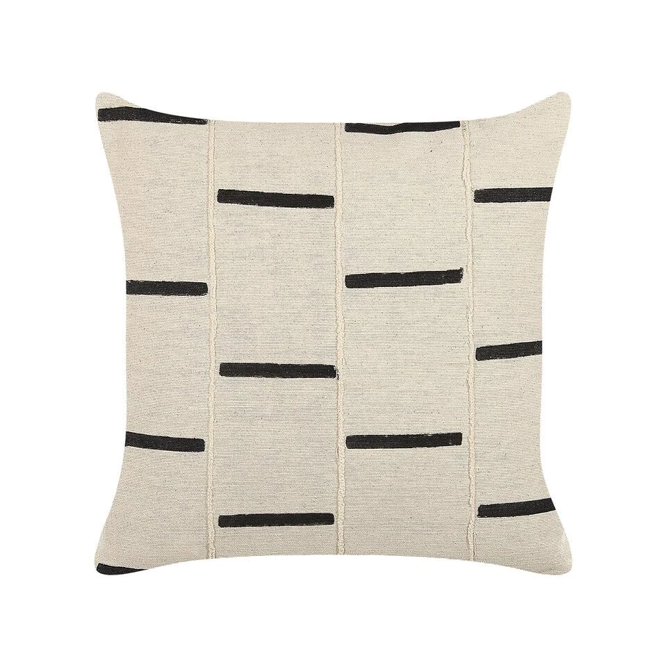 Handgemaakt decoratief kussen met geometrisch patroon. Geniet van een knusse woonkamer of slaapkamer met dit decoratieve kussen. De handgemaakte hoes is gemaakt van zacht katoen en heeft een ritssluiting waardoor je ze gemakkelijk kan schoonmaken. Het zwarte gestreepte patroon geeft het kussen een stijlvolle look en is perfect om je interieur een boost te geven.