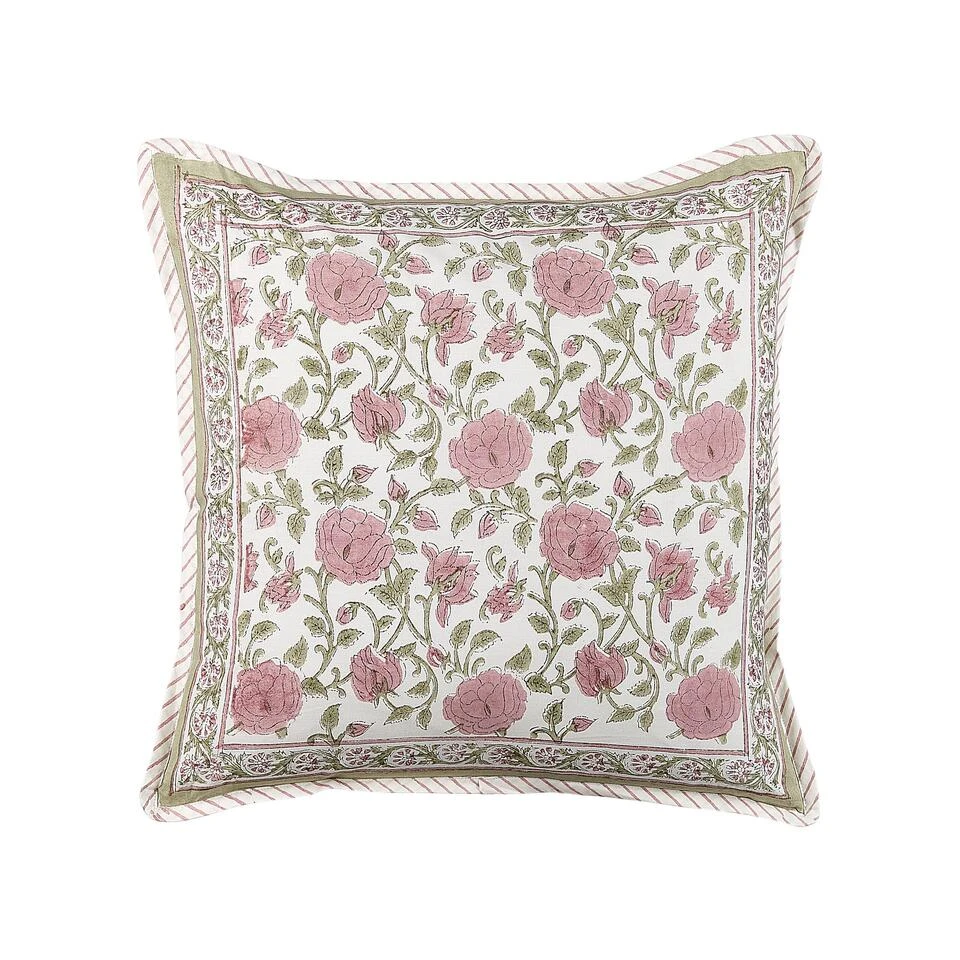 Handgemaakt sierkussen met bloemenmotief. Voeg een vleugje romantische stijl toe aan je huis met dit sierkussen met kwastjes. Het charmante bloemenpatroon is met de hand gemaakt met behulp van een blokdruktechniek. Elk katoenen kussen wordt geleverd met een zachte vulling en een ritssluiting voor handig gebruik.