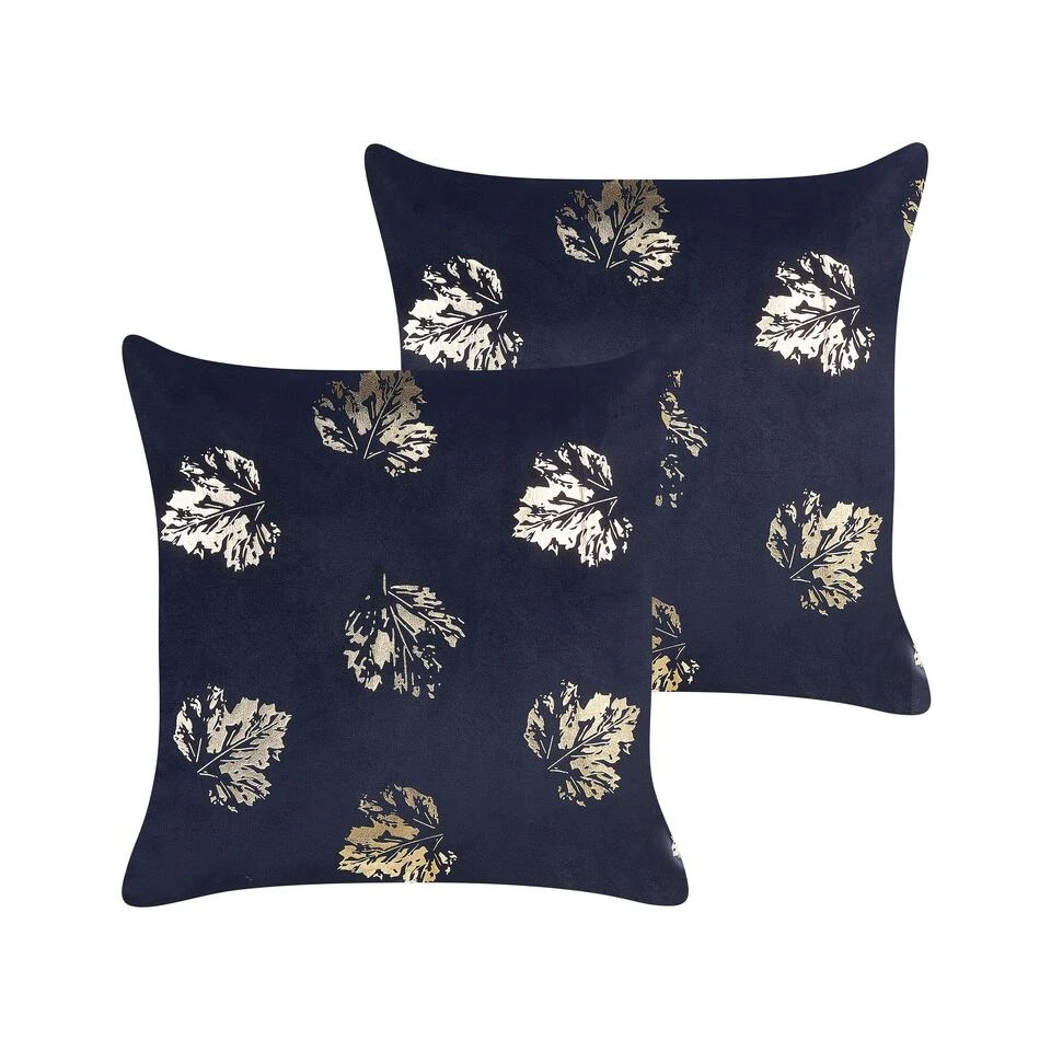 Glamour kussens met bladerprint. Deze kussens zijn een echt stijlvol accessoire. Elegante kussenhoezen in zwarte kleur gecombineerd met gouden bladeren print brengen een glamour accent in het interieur, waardoor het er net wat chiquer uitziet. Naast een mooi design zijn de kussens dik gevuld, dus perfect voor een middagdutje.