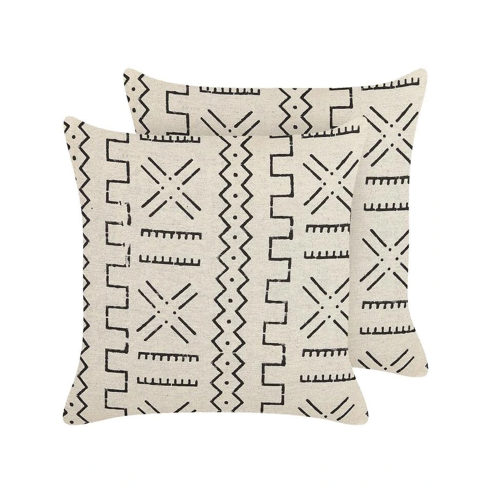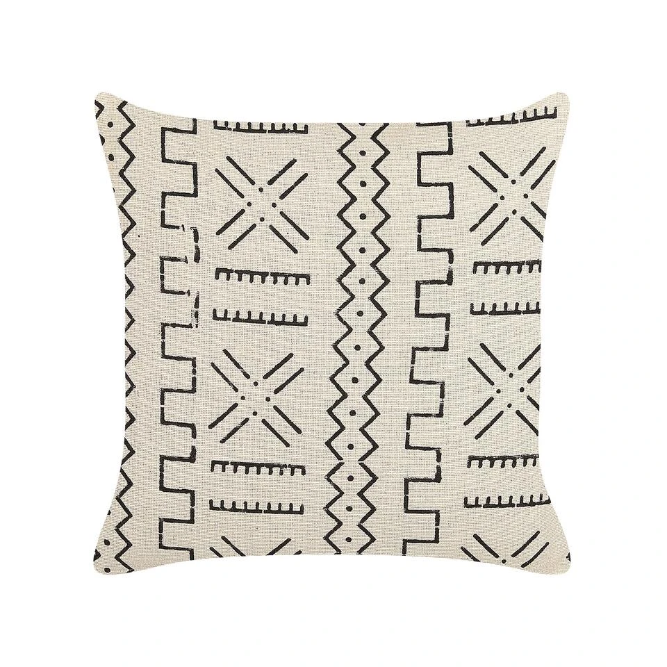 Boho geprinte kussens. Geef je bank nieuw leven met nieuwe sierkussens. Deze kussens, gemaakt van hoge kwaliteit katoen en met geometrisch patroon gemaakt met blokdruk techniek, zal een elegant en uniek accent toevoegen. Dankzij zijn simpele neutrale kleuren past hij bij meubels in zowel felle kleuren als bij pastel kleuren.