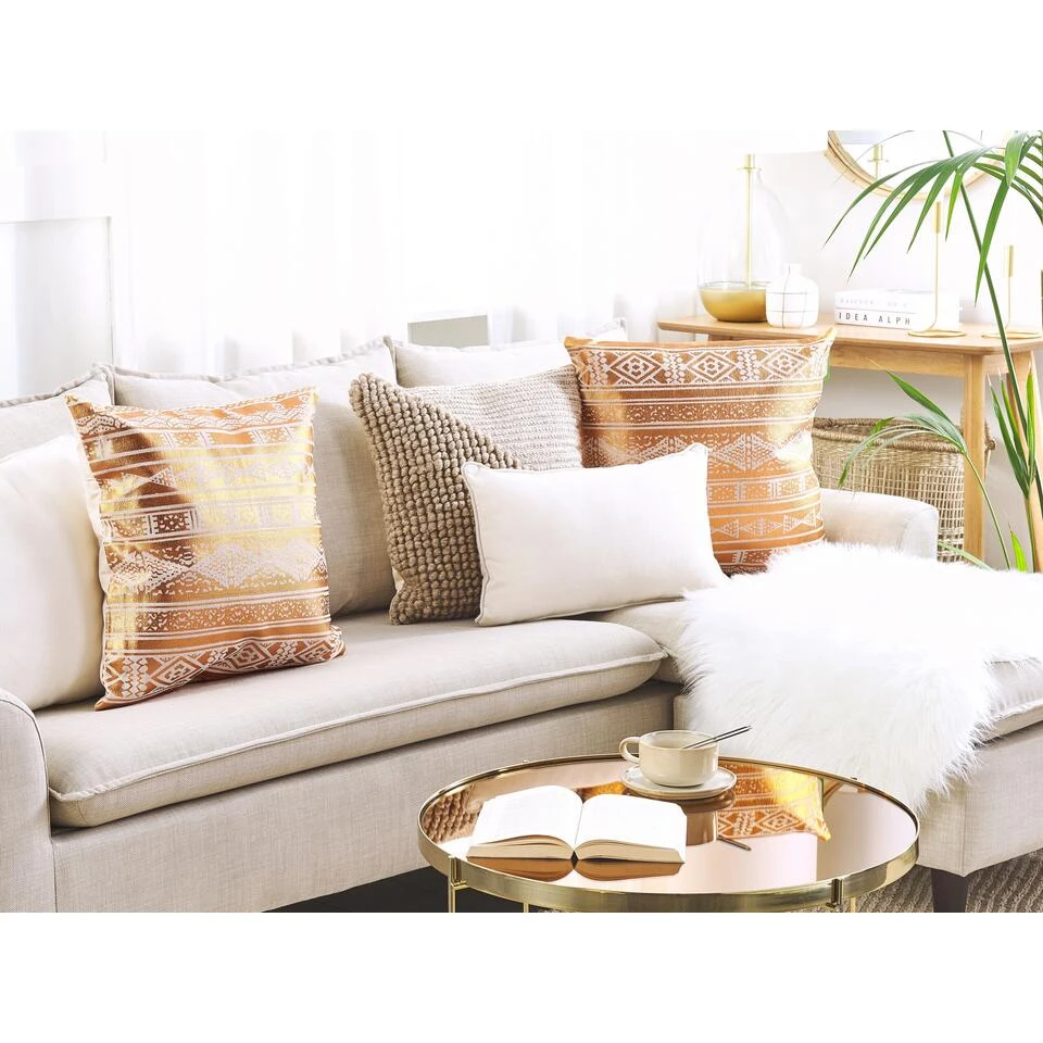 Kussen met metallic print. Voeg glamour toe aan je interieur met deze prachtige sierkussenset. Met een geometrische metallic folieprint aan één kant, zal het een extraatje geven aan een effen bank of bed. De afneembare hoes is gemaakt van katoen en zorgt voor jarenlang zacht gevoel en kwaliteit. De kussens zijn voorzien van een dik inzetstuk voor ultiem comfort.