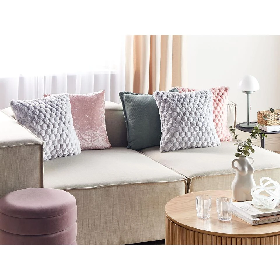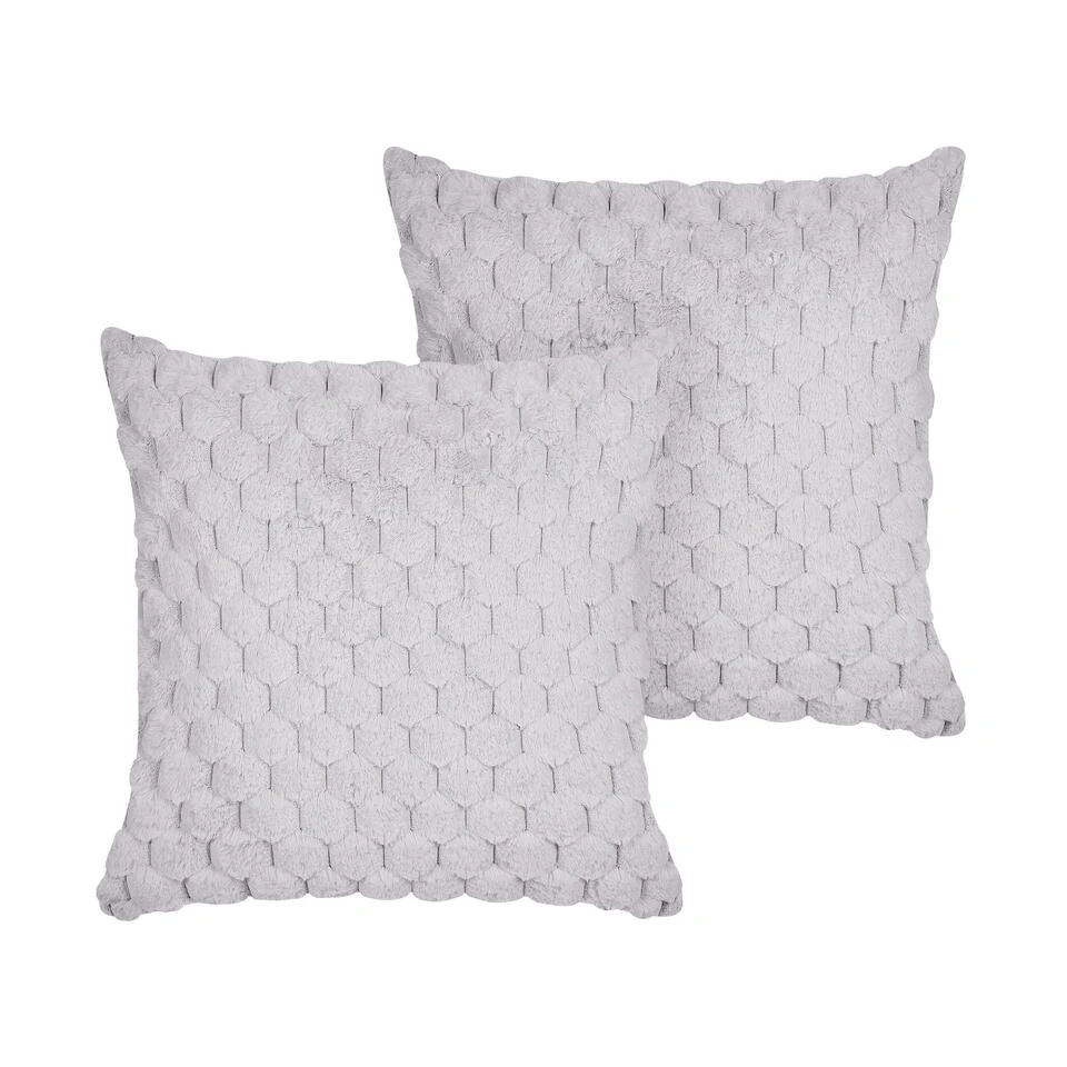 2 harige sierkussens met honingraatpatroon. Breng een gevoel van gezelligheid en voeg extra comfort toe aan je leefruimte met deze kussenset. De voorkant is gemaakt van fluffy imitatiebont met een honingraatpatroon terwijl de achterkant een elegante effen kleur en fluwelen structuur heeft. Dankzij de zachte vulling zijn de kussens perfect voor een middagdutje of relaxen op de bank.