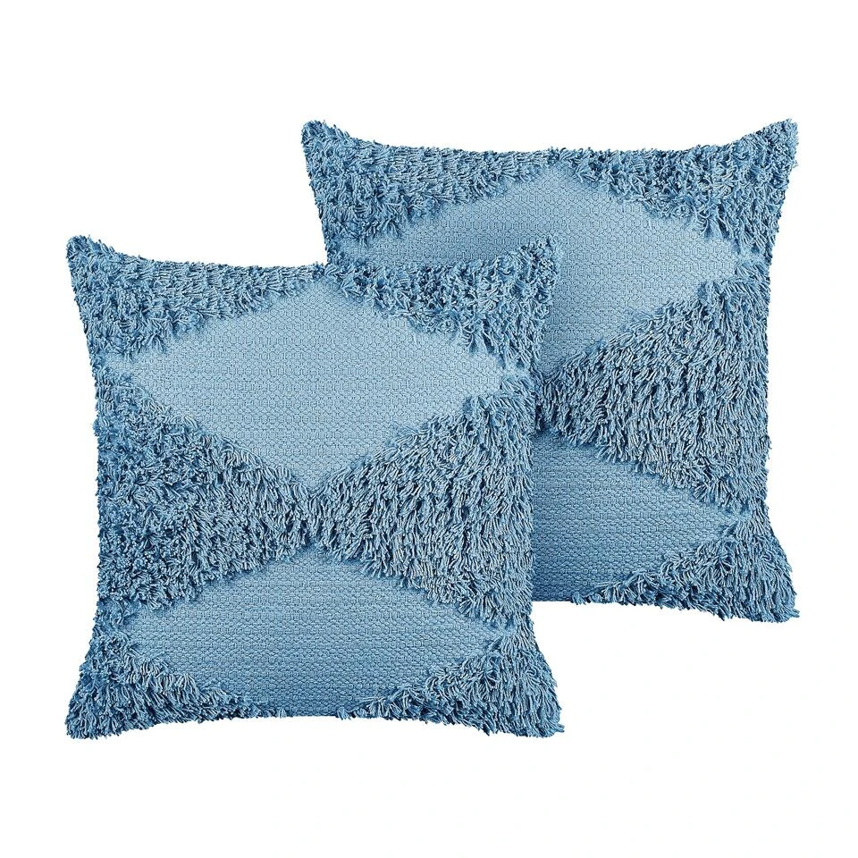 Boho stijl kussenset. Deze heerlijk zachte en stijlvolle sierkussens zijn een geweldig accentstuk voor elke ruimte. Ze zijn gemaakt van katoen en afgewerkt met fluffy en geometrische patronen die ze een boho-look geven. Dikke polyester vulling garandeert comfort. De kussens zijn een geweldige aanvulling op de bank of het bed, waar ze een gezellige sfeer creëren. Dankzij de vrolijke kleur en design passen de sierkussens in veel verschillende interieurs.