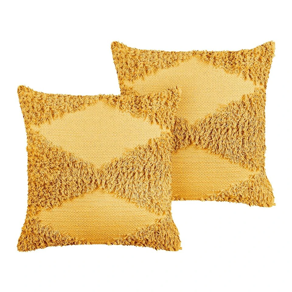 Boho stijl kussenset. Deze heerlijk zachte en stijlvolle sierkussens zijn een geweldig accentstuk voor elke ruimte. Ze zijn gemaakt van katoen en afgewerkt met fluffy en geometrische patronen die ze een boho-look geven. Dikke polyester vulling garandeert comfort. De kussens zijn een geweldige aanvulling op de bank of het bed, waar ze een gezellige sfeer creëren. Dankzij de vrolijke kleur en design passen de sierkussens in veel verschillende interieurs.