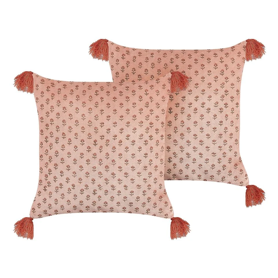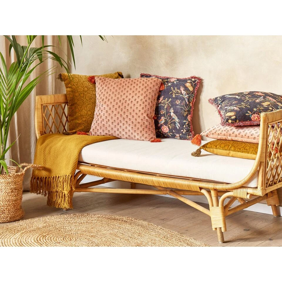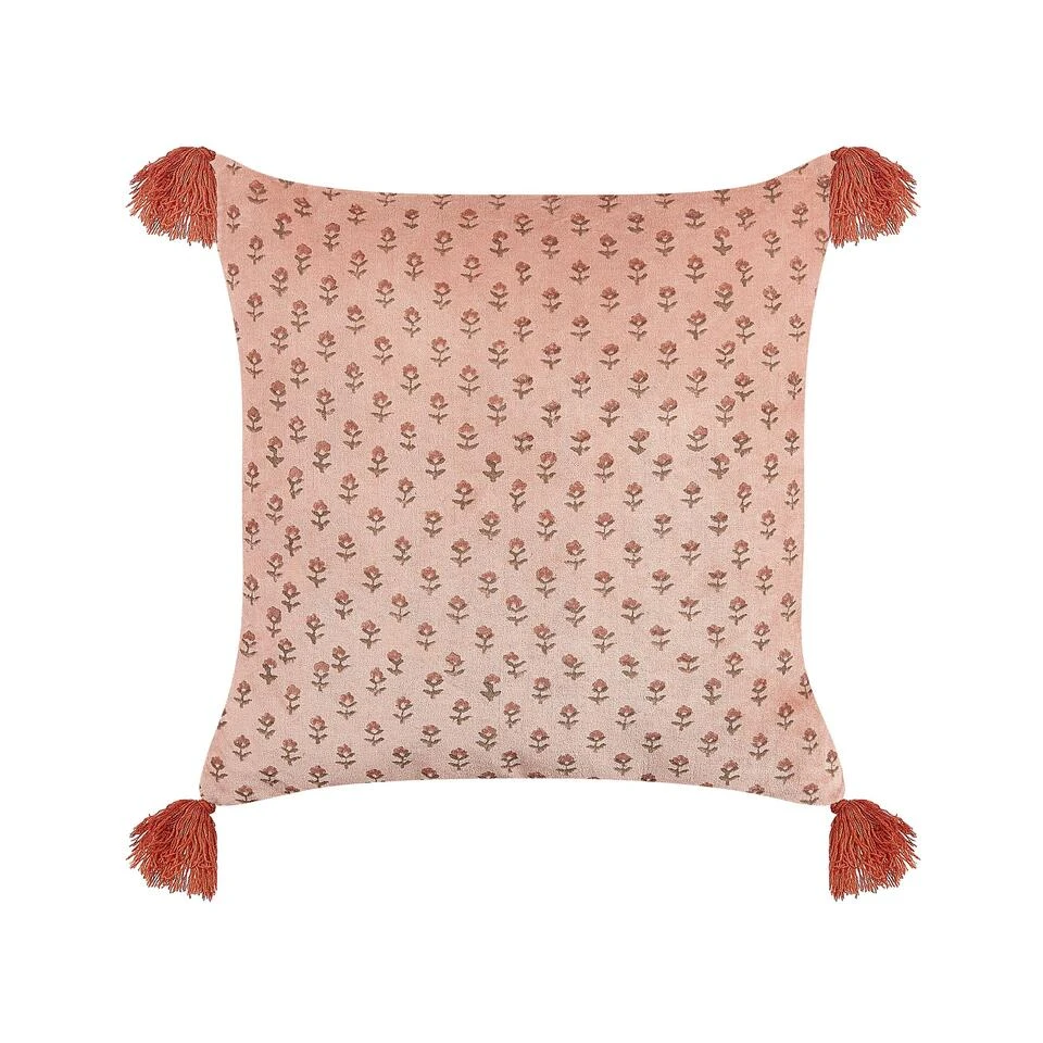 Blokdruk kussen met franjes. Voeg een boho sfeer toe aan je woonkamer of slaapkamer met deze kussens. Het kussen heeft een opvallend bloemenpatroon aan de voorkant, gemaakt met een blokdruk techniek. Het kussen is daarnaast zacht en duurzaam en gemaakt van fluweel. Met de ritssluiting aan de achterkant is de hoes af te nemen en is het kussen gemakkelijk schoon te maken.