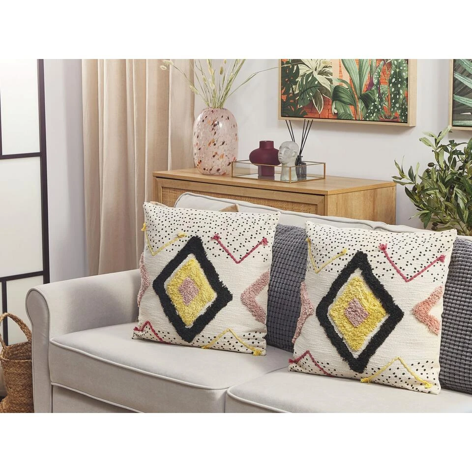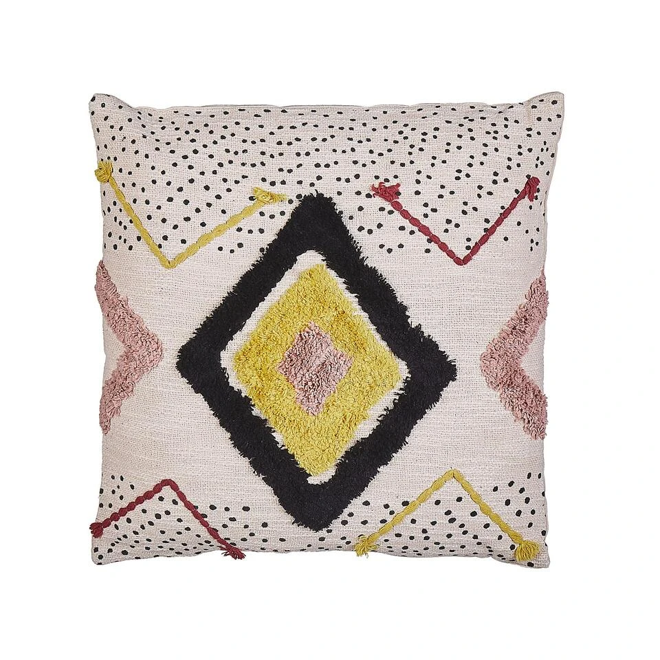 Handgeweven Decoratief Sierkussen in Boho Stijl. Het stijlvolle kussen met vulling is een geweldige aanvulling op elke woonkamer, kinderkamer of slaapkamer. De afneembare hoes heeft unieke texturen en veelkleurig borduursel en is handgemaakt van katoen voor een zacht en knus gevoel. Dit sierkussen past perfect bij elk traditioneel en boho-interieurontwerp.