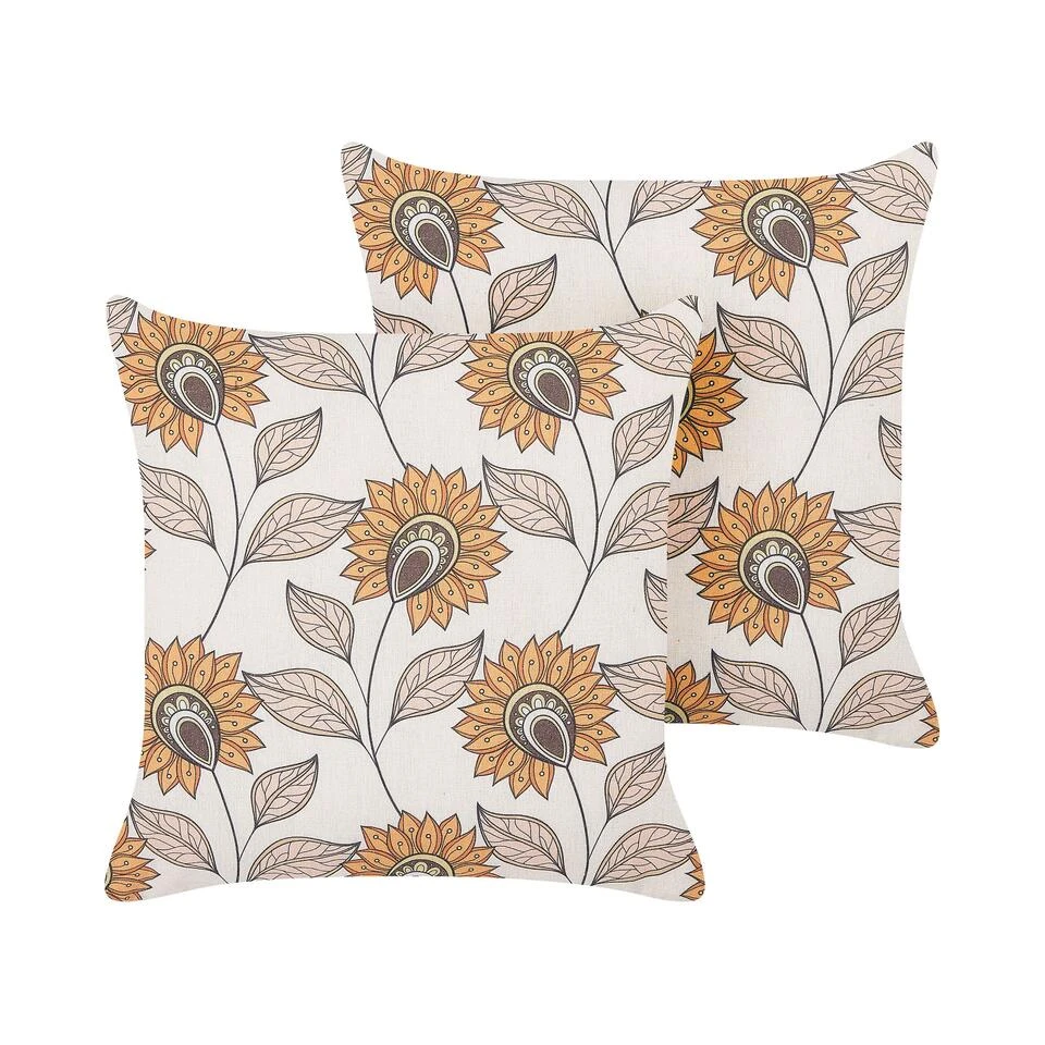 2 sierkussens met bloemmotief. Voeg een charmant tintje toe aan je interieur met deze set van twee kussens versierd met een bloemmotief. Elke hoes heeft een zachte vulling en een handige ritssluiting en is gemaakt van hoogwaardig materiaal, dat zowel comfort als duurzaamheid biedt. Deze kussens zijn perfect voor het creëren van een gezellige en stijlvolle ruimte in je slaap- of woonkamer en kunnen gebruikt worden voor een middagdutje.