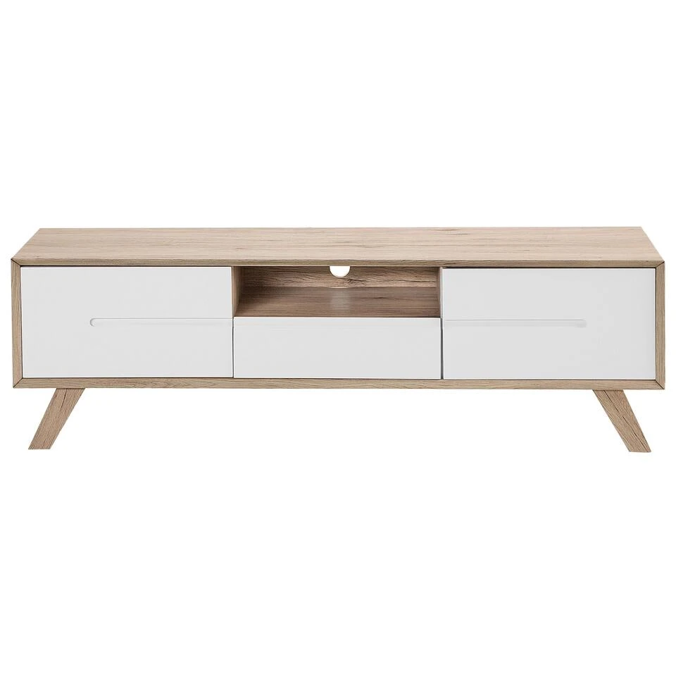 Belangrijkste eigenschappen: Met opening aan de achterzijde welke zorgt voor een gemakkelijke bekabeling, Met verschillende soorten opbergruimte, Minimalistisch, Scandinavische stijl, Perfect voor zowel slaapkamer als woonkamer, Onderhoudsvriendelijk en duurzaam materiaal