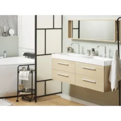 Belangrijkste eigenschappen: Softclose ladegeleiders, Met opening aan de achterzijde welke zorgt voor een gemakkelijke bekabeling, Hout-look finish voor een natuurlijke look, Voldoende opbergruimte, Beschermdoppen voor oppervlaktebescherming