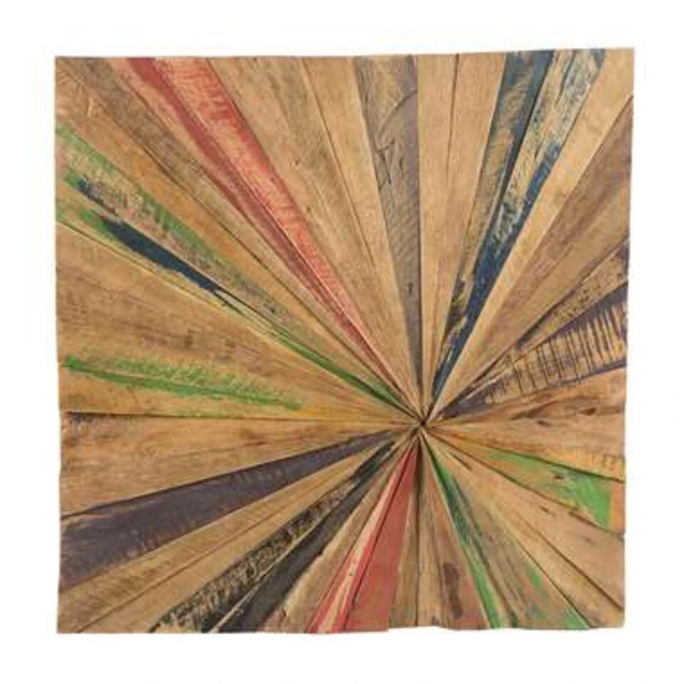 Muurdecoratie van teakhout. Deze wanddecoratie is een slimme keuze voor iedereen die een unieke inrichting in hun woonkamer wil creëren. Dit decoratieve stuk is gemaakt van teakhout. Zijn bruine tint en de kunst van het natuurmotief creëren een rustige en gezellige sfeer in elke kamer. Het 3D-effect en de verschillende formaten van het hout, zorgen voor een fascinerend resultaat. De kleuren en het patroon kunnen enigszins verschillen, omdat elke decoratie een uniek, handgemaakt item is. Maak je woonkamer nog stijlvoller met deze wanddecoratie!