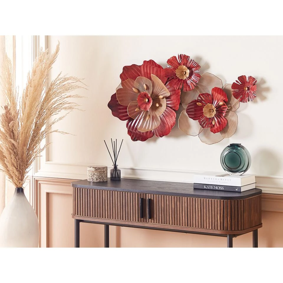 Metalen wandkunst. Met dit decoratieve accent aan de muur kun je het hele jaar door genieten van de schoonheid van bloemen. Deze wanddecoratie is gemaakt van metaal en toont rode bloesems met bijpassende gouden accenten. Stijl hem aan je muur om de ruimte veel karakter en een stijlvolle uitstraling te geven.