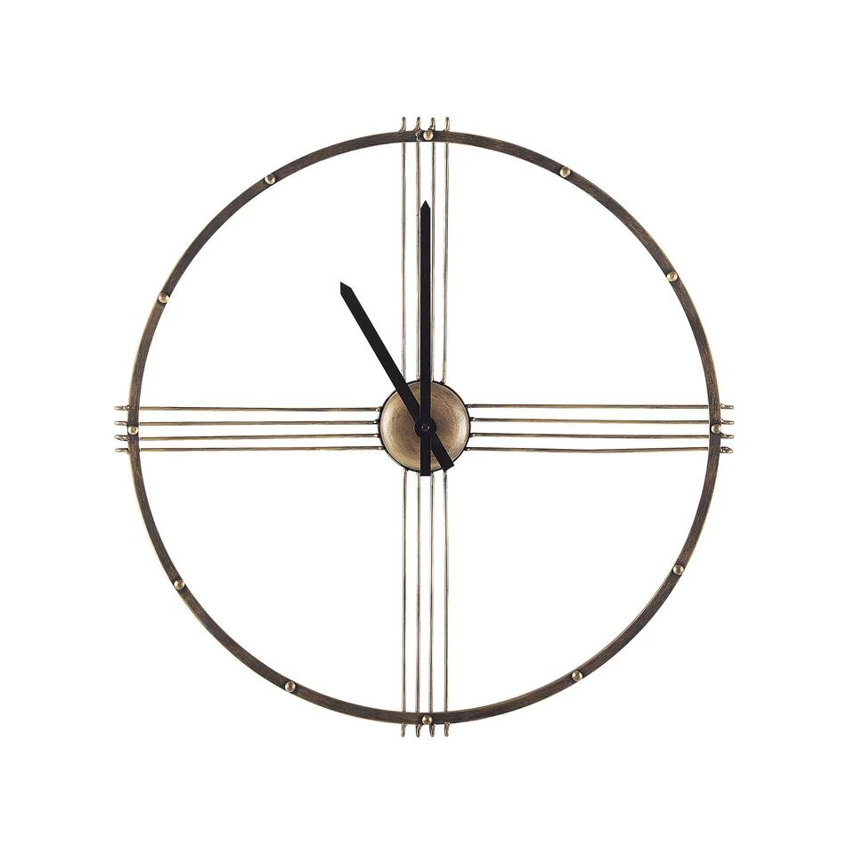 Trendy wandklok in een mooie antiek gouden kleur. Deze buitengewone en tegelijkertijd minimalistische wandklok wordt door zijn elegante eenvoud een onmiskenbare blikvanger. Het is gemaakt van hoogwaardig metaal in een antieke goudkleur. Met zijn slanke wijzers in zwart, past hij in elk interieur.