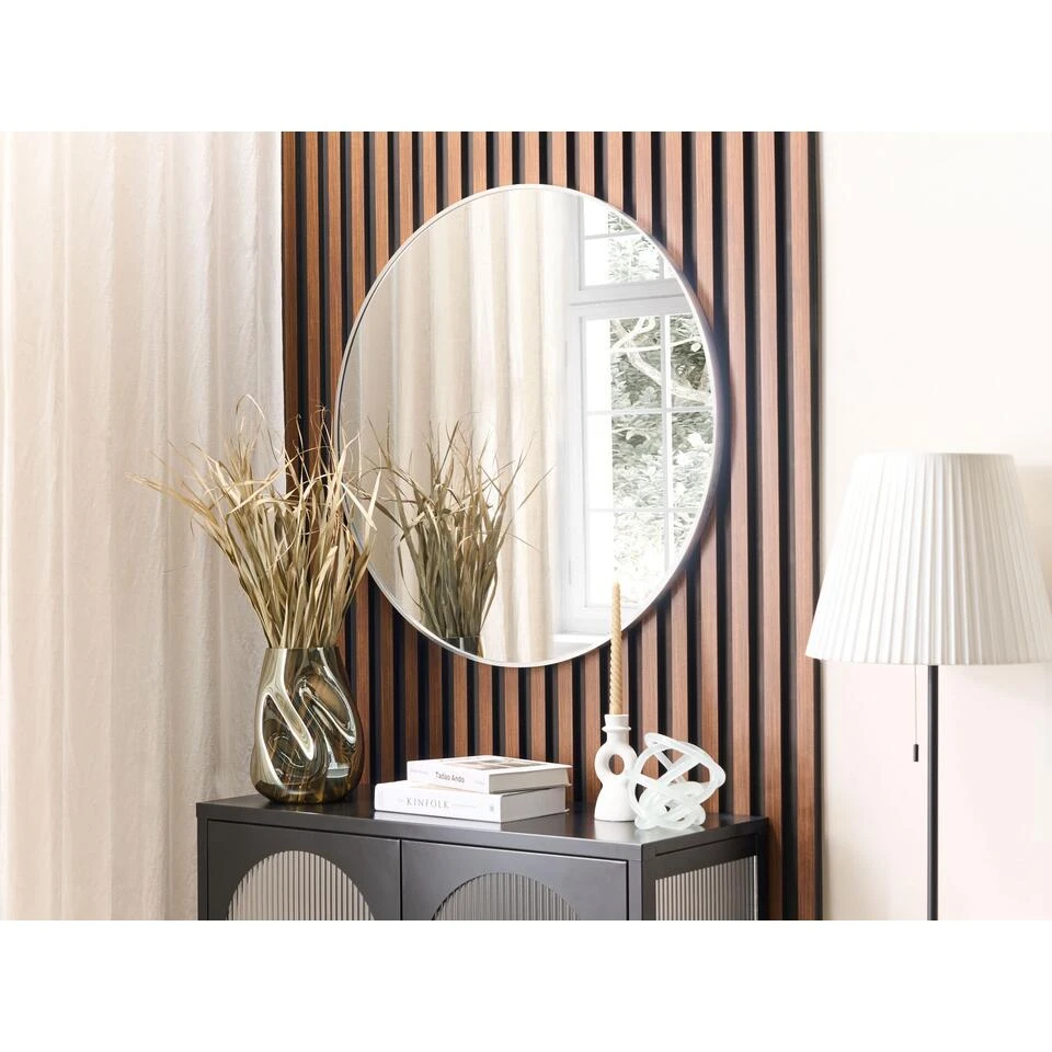 Decoratieve muurspiegel . Open je ruimte en breng meer licht binnen met behulp van een decoratieve spiegel. Deze ronde spiegel zal prachtig staan in de gang, zodat je jezelf kunt checken voordat je naar buiten gaat, of in de woonkamer waar hij een opvallend decoratief wandaccent zal worden. De subtiele metalen omlijsting geeft de spiegel een eigentijdse uitstraling.