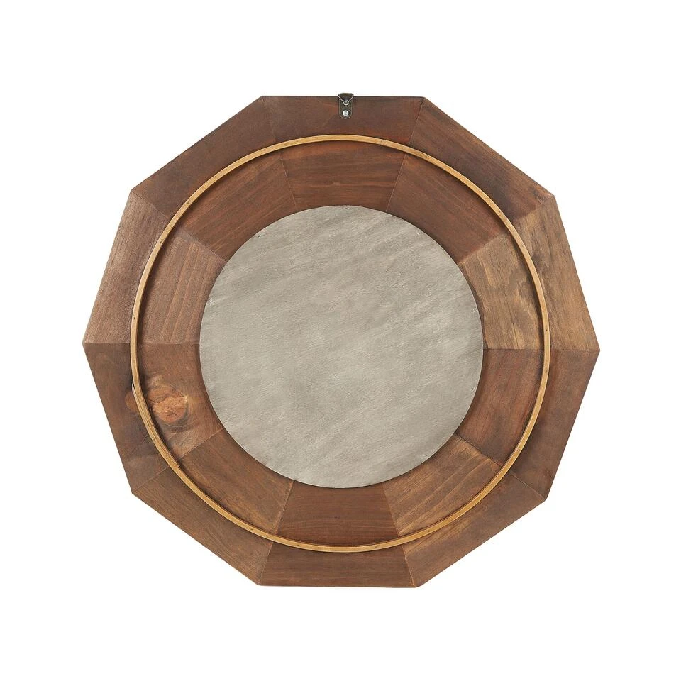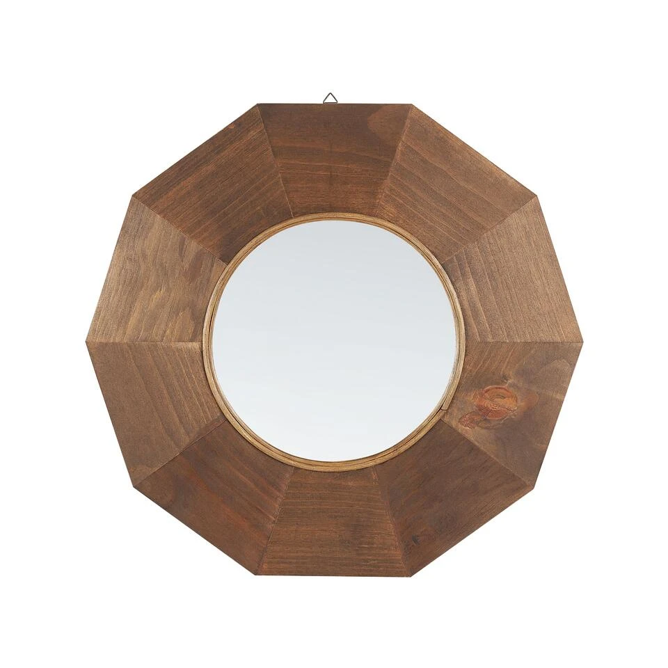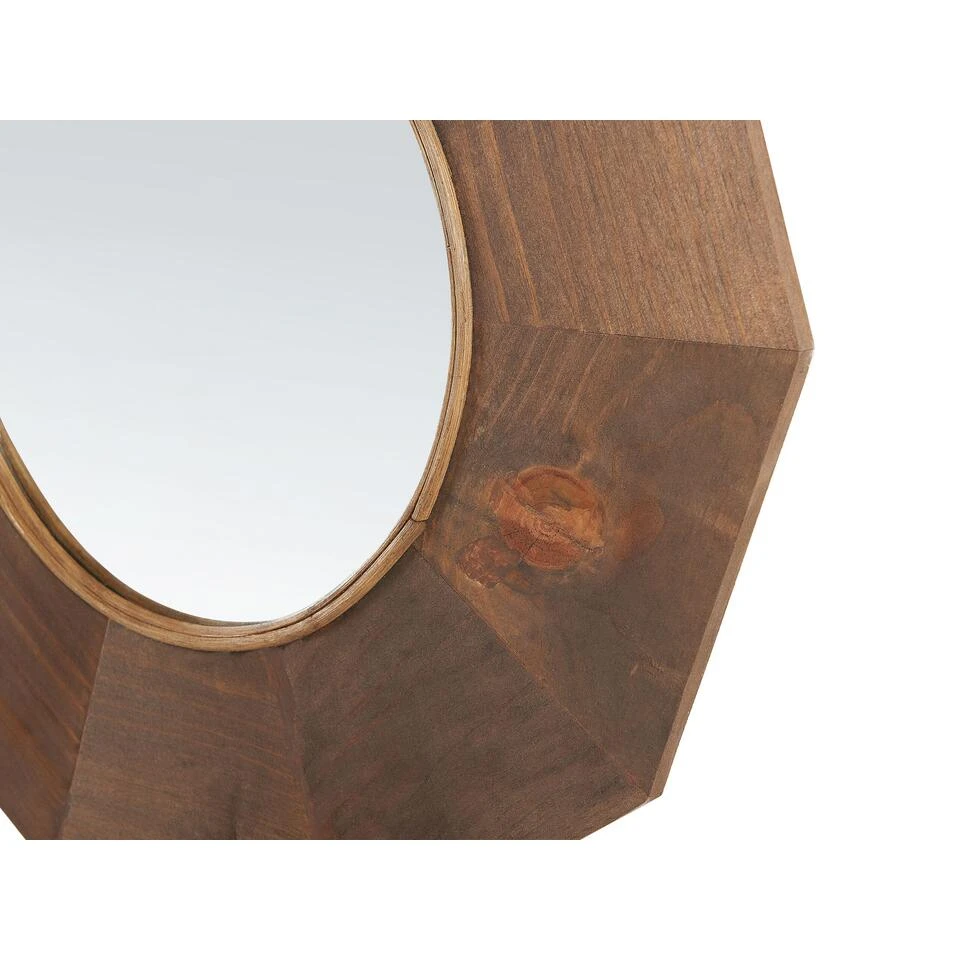 Moderne spiegel met houten lijst. Deze spiegel is de perfecte samenvoeging van functionaliteit en elegantie. Het design wordt versterkt door het frame met nauwkeurige geometrische lijnen. De warmgetinte afwerking maakt het vervolgens ideaal voor boho of moderne interieurs.