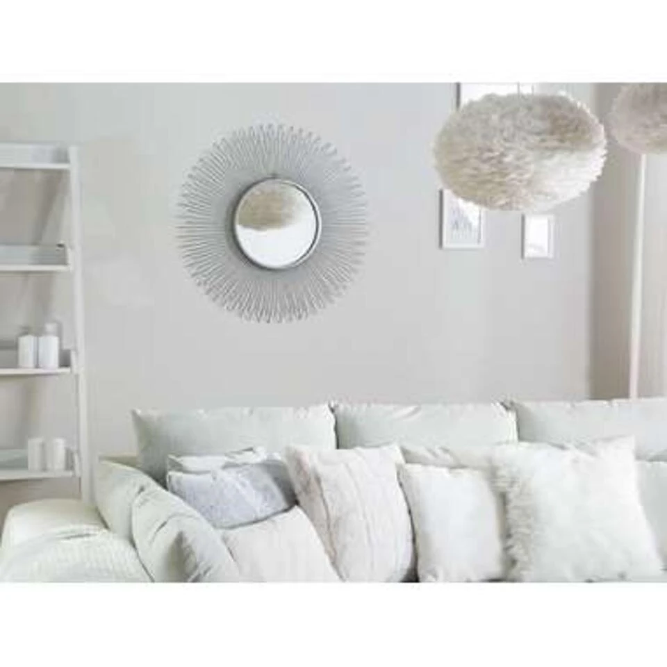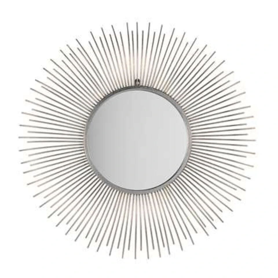 Decoratieve zon-vormige spiegel in zilver. Fleur elk decor op met het betoverende uiterlijk van deze ronde spiegel. Het gedurfde ontwerp van het zon-vormige frame werkt goed met zowel vintage als moderne interieurs. Hang hem in je slaapkamer als een make-upspiegel of monteer het in een woonkamer om meer licht te brengen